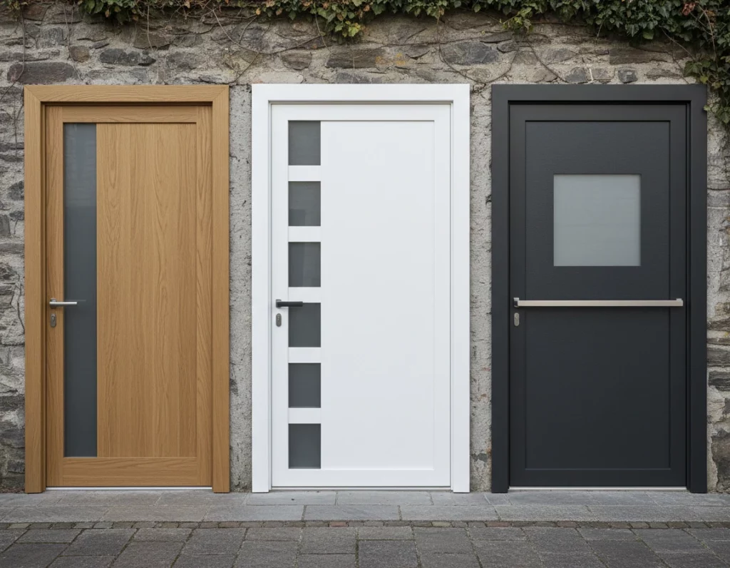 Le PVC s’est imposé comme une alternative moderne et accessible. Il représente aujourd’hui près de 40 % des portes d’entrée installées en Suisse grâce à son excellent rapport qualité-prix et sa facilité d’entretien.